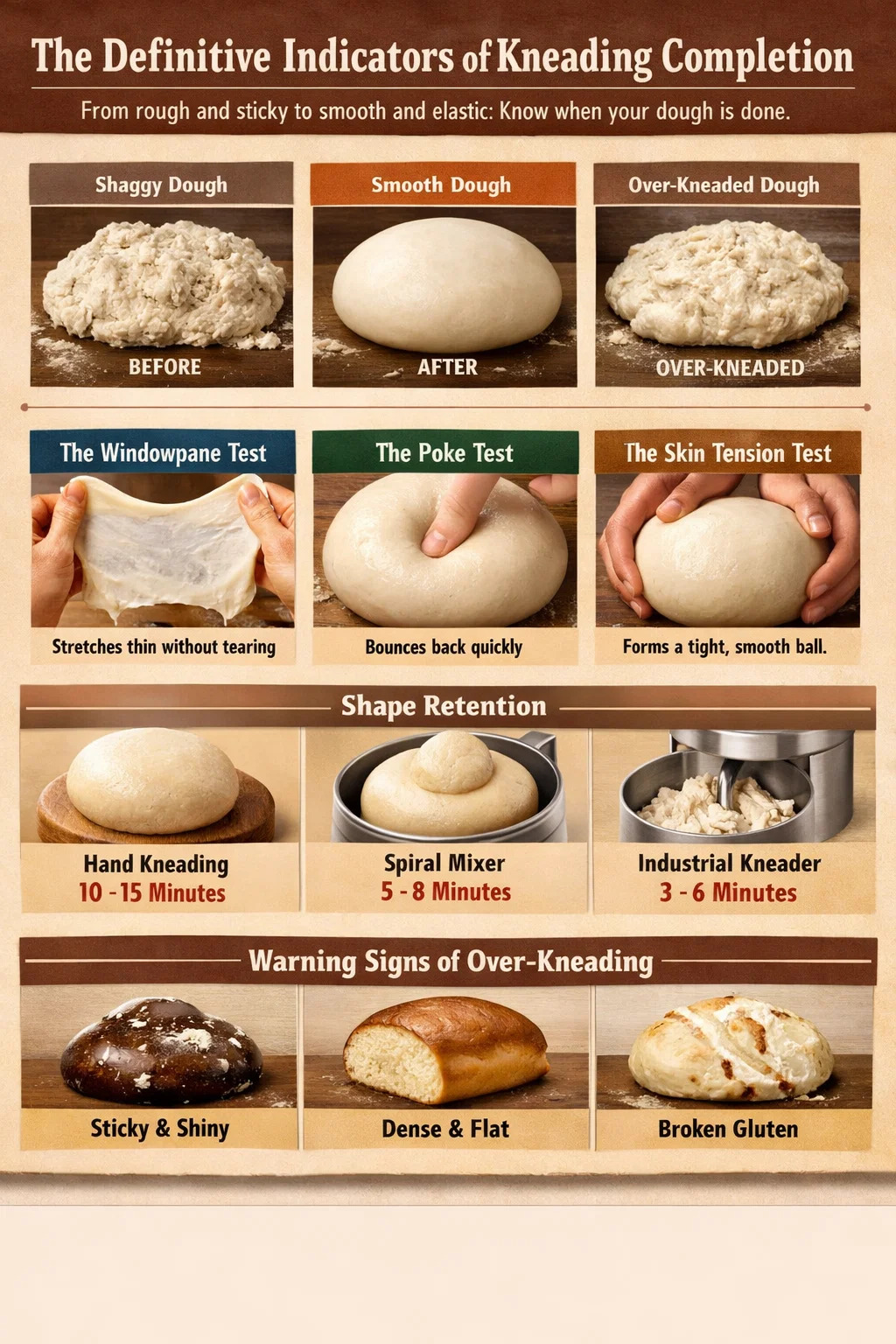 - Poke Test: Digitum premens firmiter circiter 1/2 inch in massam. Si incisum fere continuo impleat, sufficit tensio elastica. Si foraminis ibi remanet, serva utendo knader pro alio 2-3 minuta.