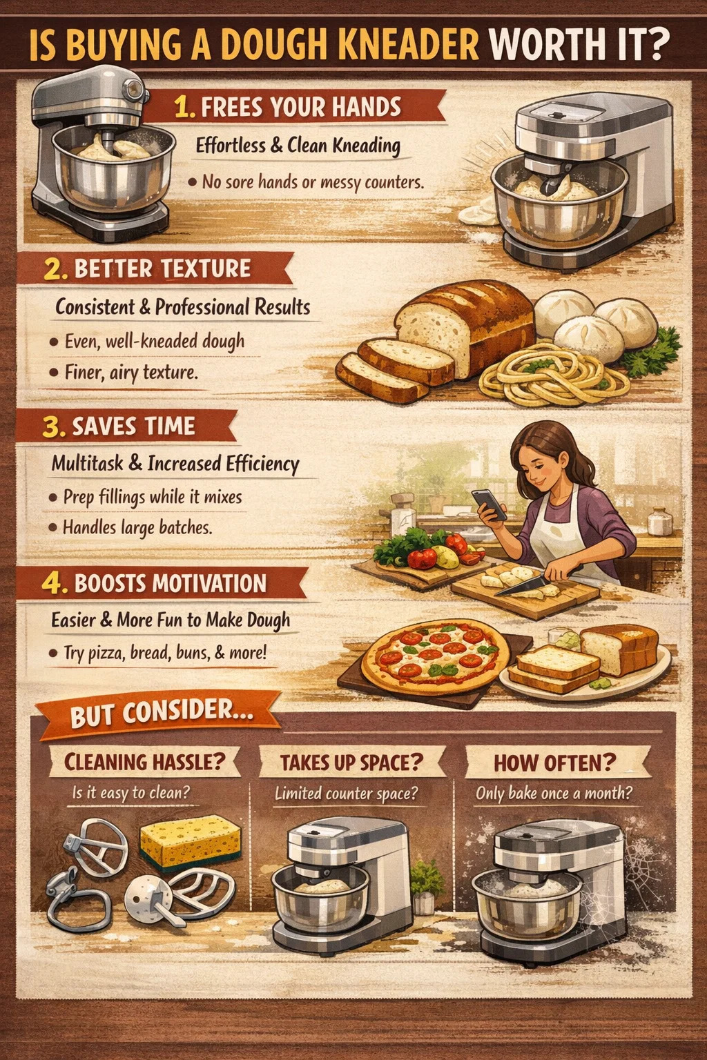 Emit farinam knader vere dignum est? Maxime pendet in quantum amas pastam faciens et quantum tempus tuum diliges. Sicut elutoria vel vacuum roboticum lautus est - quidam putant vitam esse vitam, alii putant solum spatium occupare.
